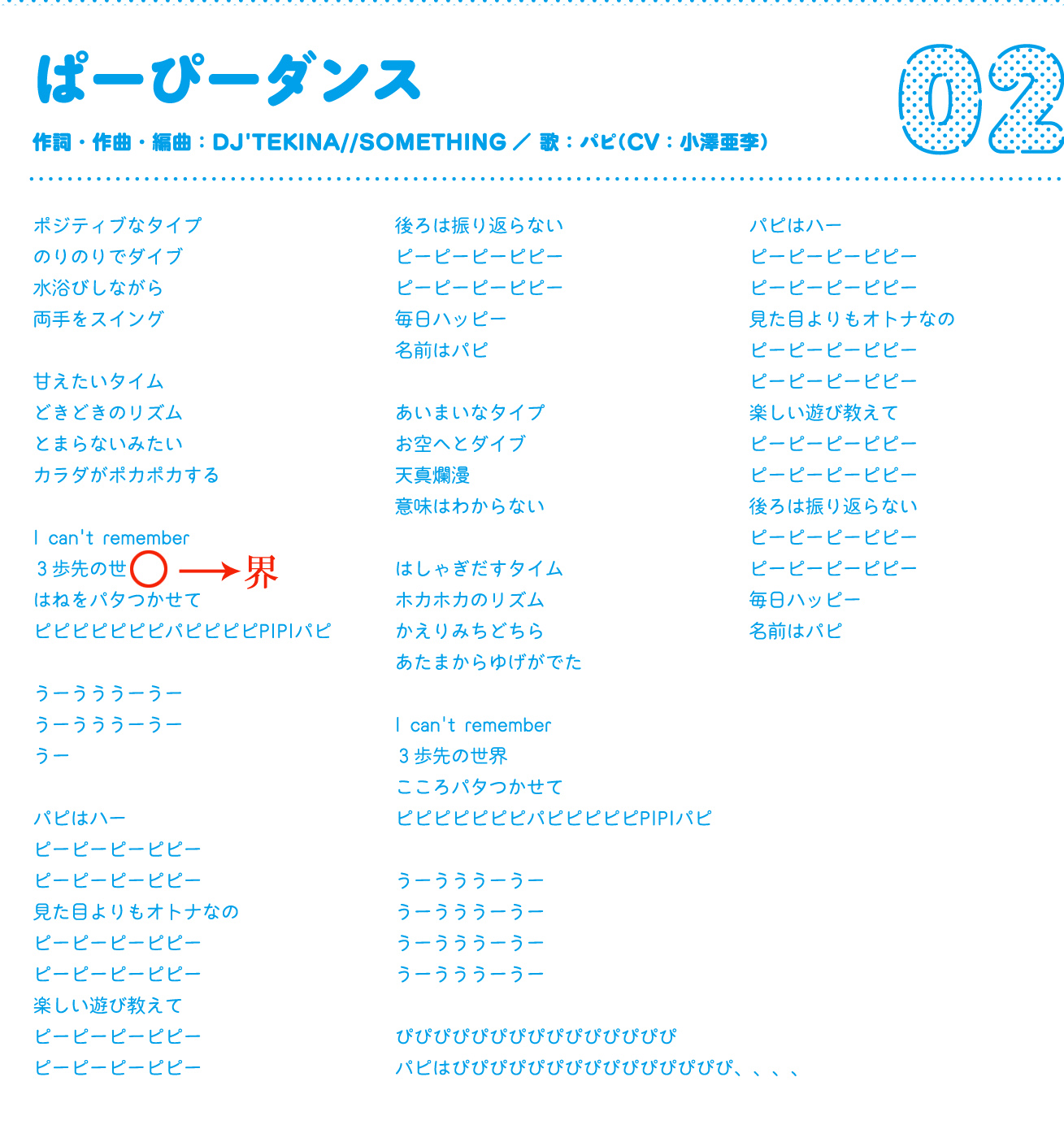 2015年9月2日発売の『モンスター娘のいる日常 キャラクターソングVol.2「パピ」』につきまして、歌詞記載のブックレットに、一部歌詞未記載部分があることが判明致しました。